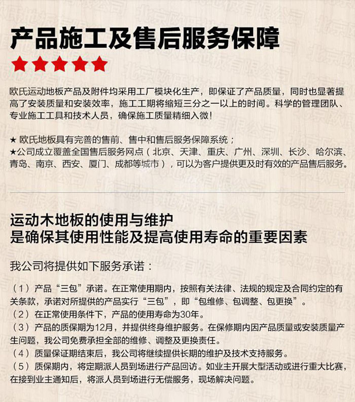 友人劉教授家里裝修,看中南美產的楓木,問我該如何與商家訂合同。我領導說,首先要表明品名、規格、數量、品德、產地、價錢等,體育木地板廠家,而后是約束條款,如售后維修服務及違約處理等。劉教授以此與商家逐個談妥,順利竣工后還來短信感謝。